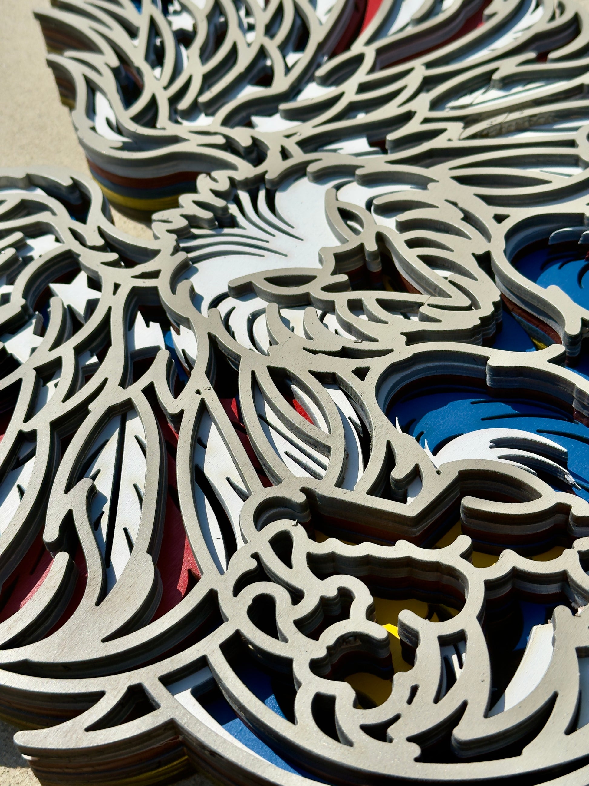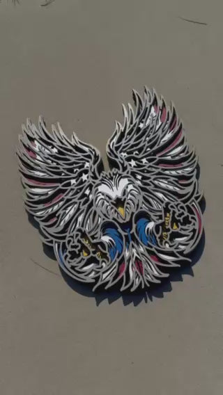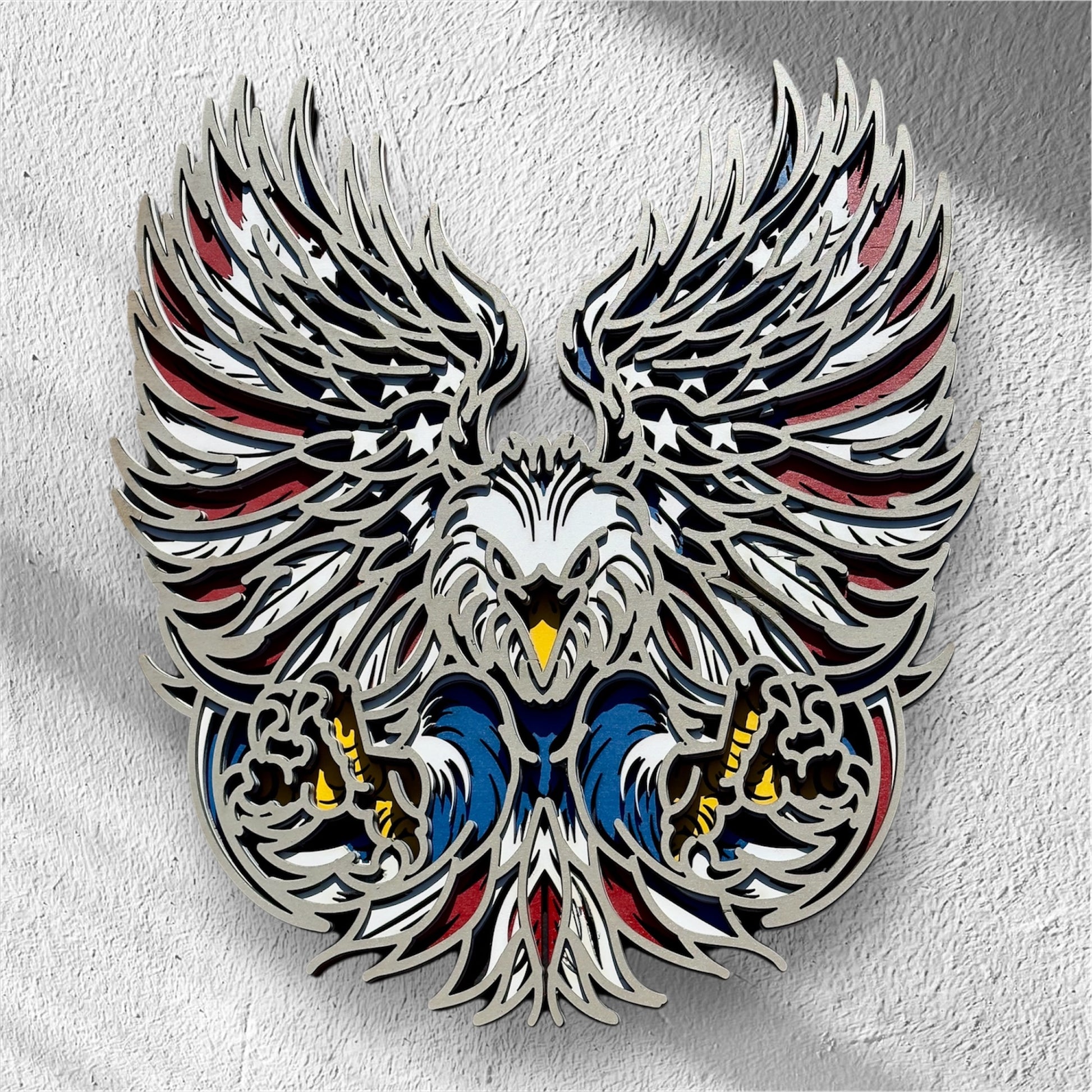 Make a bold patriotic statement with this stunning multi-layer American Eagle wall art — handcrafted with layered precision and vibrant colors that celebrate freedom and strength.