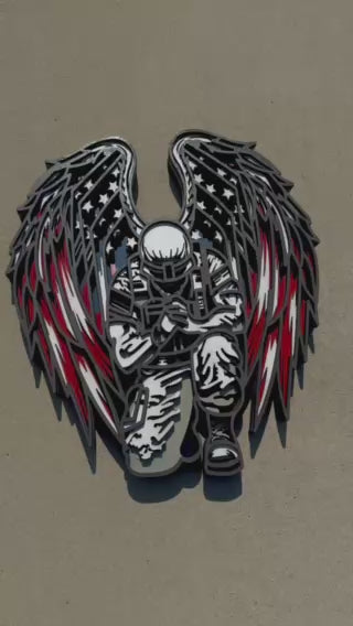 Kneeling Soldier with Angel Wings – Multi-Layer Patriotic Wall Art
