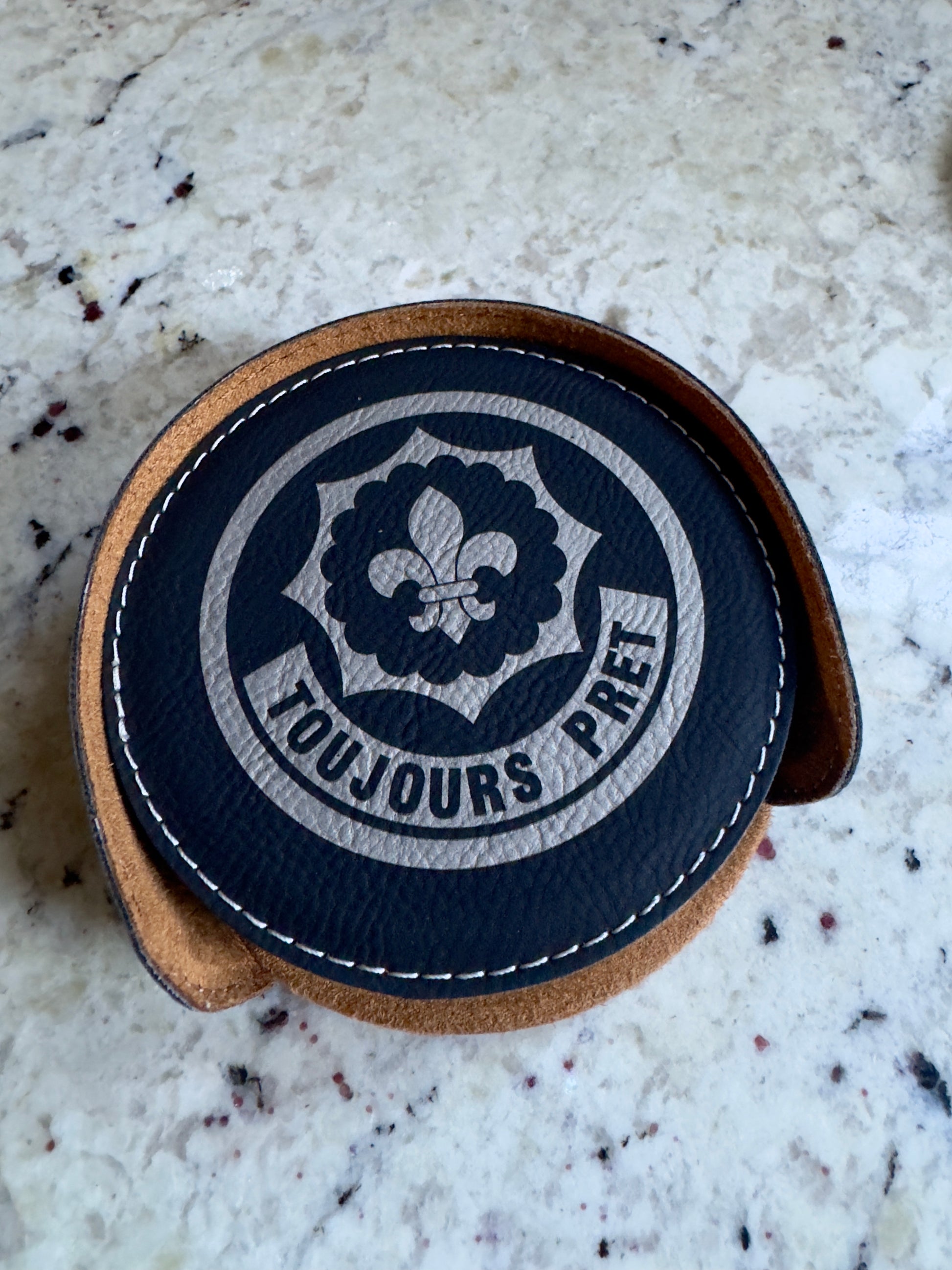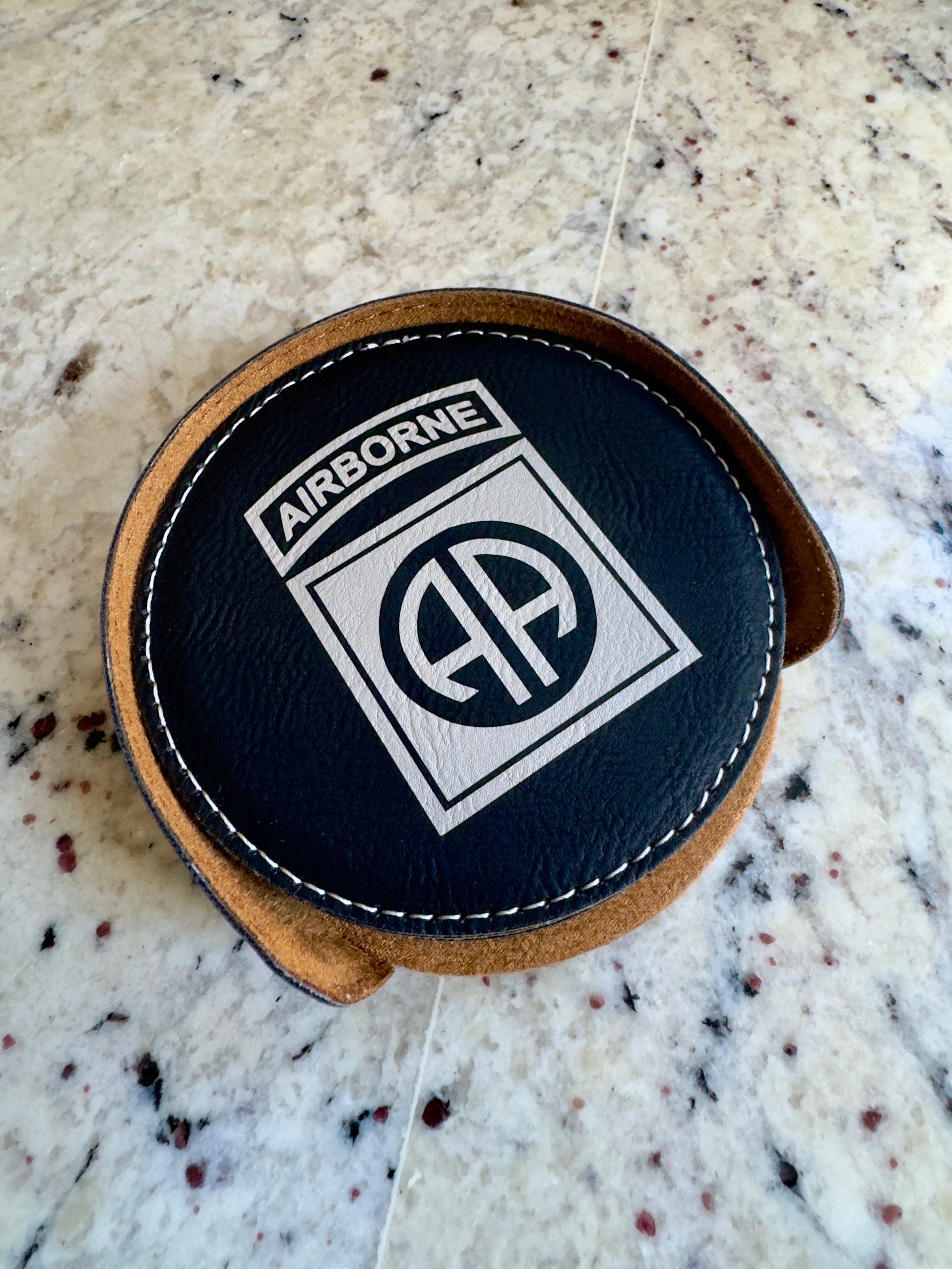 Crafted from durable and stylish leatherette, these coasters are designed to protect your surfaces from stains and scratches while adding a sleek, sophisticated look to any space. Each coaster can be personalized with your name, rank, unit insignia, or other custom text, making them a meaningful gift for military personnel, veterans, or anyone who values the contributions of our armed forces.