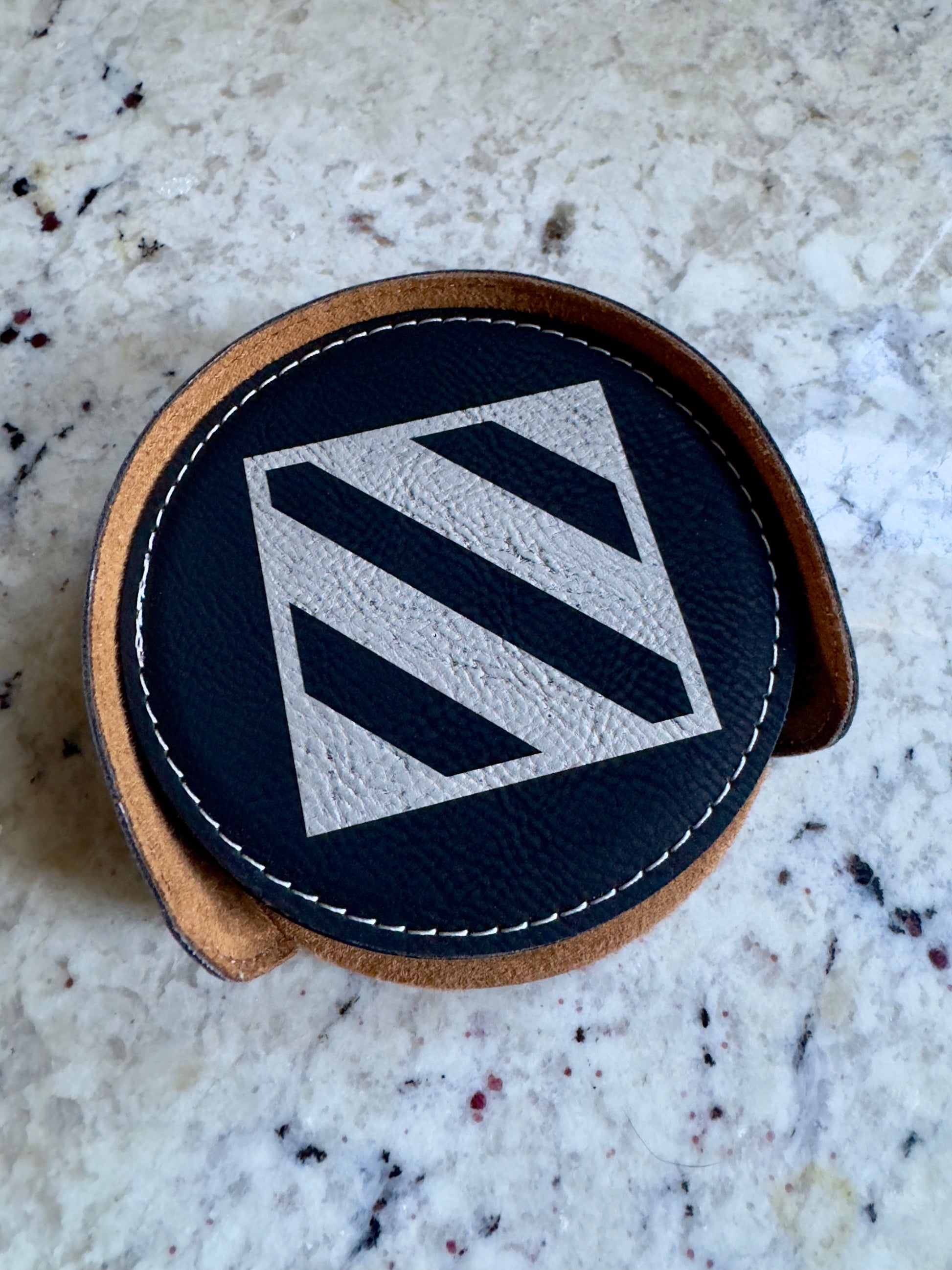 Elevate your home decor and show your appreciation for our armed forces with these timeless, customizable leatherette coasters.